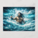 Aquarius Zodiac with Trident Warrior in Stormy Oce Postkarte