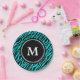 Vibrierender Aquatürkis und schwarze Zebrastreifen stellen großen PapierParty-Teller, mit einem Schwarzweiss-Mittelmedaillon her, das bereit ist, mit Ihrer eigenen Initiale besonders anzufertigen.