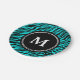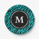 Aquaschwarzer Zebra-Streifen-Monogramm-Pappteller Pappteller