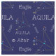 Ein nahtloses Muster der nördlichen Sternbilder Aquila oder Adler. Altair ist der Hauptstar oder Alpha-Stern der Sternbilder. Die Farben der Sterne sind ungefähr real. Sterne und Namen von Weltraumobjekten. Absolut einzigartiges Design. Eleganter Stoff für jeden. Wenn Sie auf die Schaltfläche "Design bearbeiten" oder "Persönlich gestalten" klicken, können Sie die Farbe des Hintergrunds, die Größe und das Muster der Kachel ändern und sogar Ihren eigenen Text hinzufügen. Gute Ferien und schauen Sie sich die Sterne an!