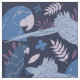 Ara Parrot Blush Pink tropisches Muster Stoffe - Kleine Skala. Blaues Muster auf dunkelblauem Hintergrund mit tropischen Blätter in Rosa, Blau und Bordeaux. Ideal für Papageienliebhaber und Papageienbesitzer. Dieses Muster in großem Maßstab ist in der folgenden Sammlung enthalten.