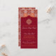 Elegantes, verziertes und faszinierendes bordeauxrotes und orangefarbenes arabesque Muster indische ethnische Hochzeitstee Stil Einladung. Die Farbgestaltung ist bordeauxrot (Wein, Sangria, Maron) und orange (Persimmon). Kühne Farben, die perfekt für eine indische oder sogar eine arabische (persische) Hochzeit sind. Sie können den ganzen Text auf dieser eleganten Teelänge Hochzeitseinladung personalisieren. Um den Text zu ändern, verwenden Sie die Optionen zum Personalisieren. Oder um den Schriftart, die Größe des Schriftartes, die Farbe des Schriftartes oder die Textplatzierung zu ändern, wählen Sie es anpassen.