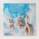 Während sich das arabische Pferd durch den Schnee stürzen lässt, schmelzen sich eine kleine Pferdearmee in die Berge von Blau, während geometrische Flitter von den Göttern abschmelzen. Babyhimmelblaue Farben bedecken den kristallinen Pinienwald.