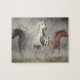 Drei arabische Pferde galoppieren aus dem Nebel. Der Anführer ist weiß (technisch grau), gefolgt von schwarzen und kastanienbeschichteten Pferden. Arabianische Pferde sind eine der ältesten und bekanntesten Pferderassen der Welt, gefeiert für ihre bemerkenswerte Schönheit, Intelligenz und Ausdauer. Diese Rasse stammt aus der arabischen Halbinsel und zeichnet sich durch einen fein gesäumten Kopf, einen hohen Schwanz und ein ausgeprägtes, abgespecktes Gesicht aus, das sie auseinander Set. Sie besitzen einen kompakten, kräftigen Körper mit einem kurzen Rücken, der zu ihrem bemerkenswerten Agility und Tempo beiträgt. Arabianische Pferde sind sehr vielseitig und in einer Vielzahl von Disziplinen von Ausdauerrennen, die ihre bemerkenswerte Ausdauer zeigen, bis hin zu Dressur und Springen, die ihr Agility und Eleganz hervorheben. Über ihre körperliche Leistungsfähigkeit hinaus sind arabische Pferde für ihre geistige und zugleich sanfte Natur bekannt, die tiefe Bindungen zu Menschen bilden. Dieses Temperament macht sie zu hervorragenden Begleitern für Fahrer aller Altersstufen und Qualifikationsstufen. Der Einfluss der Rasse reicht weit über ihre Ursprünge hinaus, da arabische Blutlinien bei der Entwicklung vieler anderer Pferderassen eine wesentliche Rolle gespielt haben und Eigenschaften wie Geschwindigkeit, Verfeinerung und Ausdauer verleihen. Ihr bleibendes Vermächtnis ist ein Beleg für die Anpassungsfähigkeit der Rasse und die tiefe Zuneigung, die für sie von Enthusiasten auf der ganzen Welt gehalten wird. Egal, ob sie für ihre Schönheit im Schauring, ihre Ausdauer auf dem Weg oder ihren Konkurrenzgeist in der Arena bewundert werden, die arabischen Pferde fesseln und inspiriere weiter.