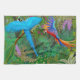 La conception originale de beaux-arts des perroquets colorés d'ara dans la jungle par l'artiste Carolyn McFann du studio de ronronnement de deux chats a imprimé sur une qualité, serviette de cuisine lavable en machine de Mojo d'Américain pour des fans de perroquet.