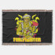 Völlig gekleideter Feuerwehrmann im feuerbekämpfenden Gang, der eine Feueraxt hält, wird in der Asche bedeckt! Großer roter und gelber Feuerwehrmanntext! Lodernder roter und gelber Schildhintergrund! Starke Arbeitsfeuerwehrmanngeschenke! Stützen Sie bitte unsere Feuerwehrmänner!