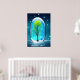 Un arbre à l'intérieur d'une bulle d'eau et de glace avec une boule violette avec la nuit noire dans l'arrière - plan. C'est un art généré par l'IA.