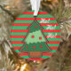 Ornement de fête génial d'arbre avec la conception les rayures et de l'arbre de Noël verts et rouges. Option à customiser avec votre propres texte/nom. Le mêmes texte/image sur l'avant et l'inverse.