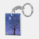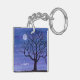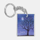 Une aquarelle représentant une belle silhouette d'arbre sous une pleine lune orne ce porte - clé personnalisable !