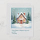 L'image montre une maison de Noël joliment décorée, décorée de lumières vives.Le dessus de la carte indique clairement "Joyeux Noël !" dans un style calligraphique, ajoutant un charme spécial et une humeur joyeuse. Image idéale pour les cartes de Noël ou le décor de vacances.