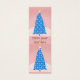Arbre de Noël bleu Abstrait et ciel rose et neige, avec le texte Joyeux Noël. Art naïf.