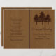 Arbre sur bois brun mariage cérémonie et programme plié de fête avec trois conifères sur le grain de bois et texte en marron. Ce design mariage moderne et élégant est un modèle entièrement personnalisable et fait partie d'un ensemble mariage parfait pour un mariage boisé rustique. Il faut le plier au centre. Choisissez seulement ce type de papier-valeur comme il se plie bien. Notez qu'il n'y a pas de bois réel juste une image IMPRIMÉE.