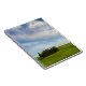 Le carnet avec un groupe d'arbres de cyprès en paysage avec les collines vertes et fleurs jaunes sous le beau blanc opacifie près de Torrenieri dans le d'Orcia de Val (vallée d'Orcia) en Toscane, Italie.