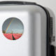Un aimant photo souvenir rond avec un arc-en-ciel coloré dans un ciel sombre au-dessus d'un moulin à vent et un champ plein de tulipes rouge vif pendant une tempête de printemps dans un paysage près d'Amsterdam dans la Pays-Bas.
