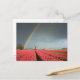 Carte postale d'un arc-en-ciel coloré dans un ciel foncé au-dessus d'un moulin à vent et d'un champ rempli de tulipes rouge vif lors d'une tempête de printemps dans un paysage près d'Amsterdam dans la Pays-Bas.