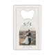 Célébrez votre grande journée avec cet ouvre-bouteille moderne en forme d'arc et un élégant monogramme en forme d'arc sur le devant. Le dos présente une mise en page complète des photos, parfaite pour un portrait fiançailles ou mariage préféré. Un soin pratique que vos invités utiliseront, et une belle façon de dire merci.