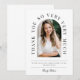 Dieser moderne elegante Foto Abschluss Dankeschön-Karte verfügt über ein vertikales Foto im Bogenstil mit den Worten "Vielen Dank" mit anpassbarem Skriptnamen und Text auf der Vorderseite. Der Rücken ist leer für Ihre persönliche handgeschriebene Nachricht. Klicken Sie auf die Schaltfläche Bearbeiten, um dieses Design zu personalisieren.
