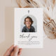 Diese moderne und elegante Dankeschön-Karte ist eine wunderbare Möglichkeit, sich für die Liebsten zu bedanken, die in die Erste Heilige Kommunion Ihres Kindes kommen. Sie zeigt Ihr individuelles Foto in einer modernen Bogenform, "Danke" in einem Schriftart mit Schrift darunter. Sie können es auch mit Ihrer eigenen Botschaft personalisieren, um einen Sake zu schaffen, der diesen besonderen Meilenstein widerspiegelt. Ideal, um Ihre Wertschätzung mit Familie und Freunden zu teilen!