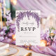 Diese Arched Wisteria Wedding RSVP Card ist die perfekte Ergänzung zu einem romantischen Blumenthema. Mit einem zarten Bogen aus Aquarellweiden verbindet diese Karte botanische Eleganz mit zeitlosem Charme. Die Gäste können die Vorlieben und Vorlieben des Abendessens ganz einfach bestätigen, sodass Hochzeitsplanung mühelos ist. Ideal für Gartenhochzeiten, Weinberge, Hochzeiten im Freien und in Böhmen. Dieses UAWG Design verbindet sich wunderbar mit Lavendel-, lila- und Grünthemen.