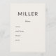 This architectural 5x7 wedding program and menu card features a bold surname header with a refined minimalist layout. Designed as a dual-sided modular format, it combines ceremony order and reception menu in one cohesive piece.