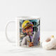 Dieses Bild zeigt einen beruflichen Architekten, der die blauen Drucke seines neuen Projektes hält, und einen Stift, um Notizen zu machen. Sein Kopf wird durch einen gelben Helm und eine Schutzbrille geschützt. Er läuft durch ein Gebiet, das sich im Bau befindet, und kümmert sich um sein neues Projekt. Diese erschwingliche Tasse lässt sich leicht an Ihre Bedürfnisse anpassen.