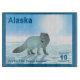 Weiß auf Weiß. Eine 10-Nugget-Porto-Briefmarke, herausgegeben von einer mythischen unabhängigen Nation von Alaska. Ein digitales Bild eines arktischen Fox, Vulpes lagopus, auf dem Polareis. Die Sonne hängt tief im hellblauen arktischen Himmel. Nicht an der Sonne starren, da es Ihren Augen schaden kann. Textlesen, "Alaska", "POSTAGE 10 NUGGETS", "Arctic Fox" und "Vulpes lagopus" erscheinen ebenfalls. Der Arktische Fox ist in tiefer Kälte bequem; er fängt nicht an zu zittern, bis die Temperaturen aufgrund seines dichten, vielschichtigen Fells auf etwa -70 °C (-94 °F) fallen. Weitere Anpassungen an ein kühles Klima sind Fell auf den Fußsohlen, kurze Ohren und ein kurzes Maultier. Arktische Füchse leben in Pfahlen, in einem Blizzard können sie sich in den Schnee stürzen, um Unterschlupf zu schaffen. Das Fell des arktischen Fuchses, manchmal blau-grau, ist eine sehr effektive Wintertarnung. Die natürlichen Farbtöne ermöglichen es dem Tier, sich in die Umwelt zu integrieren. Während der kurzen warmen Jahreszeit wechselt ihr Fell zu braun oder grau, wieder Schauspiel als Tarnung in Tundra-Felsen und Pflanze. Im Winter, wenn die Beute knapp ist, folgen die Füchse der Jagd auf Polarbären auf der Eispackung, die auf Schrott füttre. Während des Sommers fressen Nagetiere, Vögel, Eier und sogar Fische. Sie werden auch auf Beeren und Algen gefüttert. Arktische Füchse haben ein sehr scharfes Gehör, unterstützt von ihren breiten, nach vorne gerichteten Ohren, die es ihnen ermöglichen, die genaue Position ihrer Beute unter dem Schnee zu finden. Wenn es etwas unter dem Schnee bewegen hört, springt es in die Luft und springt durch den Schnee, um seine Beute zu fangen. Der Bereich der arktischen Füchse ist umpolar; er ist im ganzen Norden zu finden. Das einzige in Island geborene Landtier erreichte es, indem es am Ende der letzten Eiszeit über dem Eis spazierte.