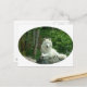 Weißer arktischer Wolf ruht auf einer Postkarte aus Stein.