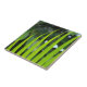Ein bisschen wie ein Foto eines grünen Zebras, ist das Design auf dieser 4,25" Keramik Tile tatsächlich ein Originalfoto von MaeFlowers von einer Areca Palmfront. Es ist ein Foto in der Nähe der Pflanze des tropischen Gartens, das seine dünnen, hellgrünen Blätter zeigt, die an ein paar breiten, dunkelgrünen Blätter in sanftem Fokus im Hintergrund angeordnet sind. Ein hellblauer Himmel kann zwischen den Blätter gesehen werden. Areca Palmen sind in Madagaskar beheimatet und auch als Schmetterlingspalmen bekannt.