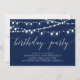 Célébrez votre journée spéciale avec cet élégant modèle d'invitation à la fête d'anniversaire moderne. Ce design présente de belles lumières à cordes avec un thème de couleur argenté et marine. ( 21e anniversaire, 30e anniversaire, 40e anniversaire, 60e anniversaire, 70e anniversaire, ou toute autre fête d'anniversaire. )