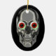 Un crâne d'argent mal regardant avec des globes oculaires rouges imaginaire ornement personnalisé. Cliquez sur Personnaliser pour ajouter un message personnel au verso. Si vous avez besoin d'aide ou avez des demandes, veuillez me contacter. Je peux aussi ajouter l'image à l'arrière de l'ornement. Cette image est disponible sur de nombreux produits dans ma galerie.