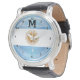 Uhr, Vintage Männeruhr mit schwarzem Lederarmband