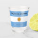 Feiern Sie den Unabhängigkeitstag Argentiniens mit diesem festlichen Schuss Glas, das die ikonischen blau-weiß Farben der argentinischen Flagge mit Begrüßungen und Datum auf den blauen Teilen der Flagge zeigt. ¡Feliz Día de la Independencia! Design © W.H. Sim. Weitere Informationen unter zazzle.com/expressionsoccasions