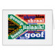 Une foule de mots d'argot et de colloques sud-africains affichés sur le drapeau de l'Afrique du Sud, (noir, blanc, bleu, rouge, vert et or). Boerewors, bokkie, brak, Bra, bru, cerise, braai, eina !, Dop, dof, baas, blou, jislaaik !, Gesuip, hoesit, paraat, ski, Skinner, skop, goof, katkop, klankie, kwaai, lekker, muggie, moer-toe , skraal, skrik, Smaak, voertsek, tekkies.