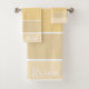 Un classique. Blocage de couleur dans différentes nuances de jaune, verge d'or, des nuances de crème beurre avec séparateurs blancs et monogramme à la base de serviette. Disponible dans une variété de tons.