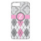 Argyle and damask pattern pink, grey monogram Case-Mate iPhone hülle
