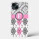 Argyle and damask pattern pink, grey monogram Case-Mate iPhone hülle