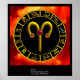 Elegantes, modernes, einzigartiges Design mit leuchtendem, lebendigen roten gelben Himmel, Wolken, Feuer Flammen .Zodiacal-Zeichen Aries mit seinem spezifischen Edelstein Ruby-Einsatz .Sehr präzise, Design, Modellierung und 3D-Darstellung von Bulgan Lumini (c).Teil der Serie Hyper Talis