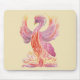 Originelle Aquarellmalerei von Sandra Gale mit einem stilisierten und feurigen Phoenixvogel mit Tragflächen und Flammen, die von unten aufgehen. Ein pastellfarbenes und blasses Farbspektrum macht dieses Modell zu einem gedämpfteren Design, das mit den meisten Hintergrundfarben gut funktioniert. Einzigartig schönes und anmutiges Design für alle.