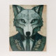 Dieses Rätsel enthält ein Wolfportrait mit einem formalen Kleid. Dies ist ein großes Rätsel für Puzzle-Sammler und Wolfsliebhaber.