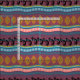 Handgezeichnetes Kokopelli und südwestliches Indianermuster in Pflaume, Gold und Türkis.