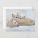 Dieses Gouache Gemälde zeigt eine schöne Familie von Eisbären, die sich selbst im Schnee warm fühlen.