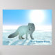 Weiß auf Weiß. Ein digitales Bild eines arktischen Fox, Vulpes lagopus, auf dem Polareis. Die Sonne hängt tief im hellblauen arktischen Himmel. Nicht an der Sonne starren, da es Ihren Augen schaden kann. Fügen Sie Ihren eigenen Text hinzu. Der Arktische Fox ist in tiefer Kälte bequem; er fängt nicht an zu zittern, bis die Temperaturen aufgrund seines dichten, vielschichtigen Fells auf etwa -70 °C (-94 °F) fallen. Weitere Anpassungen an ein kühles Klima sind Fell auf den Fußsohlen, kurze Ohren und ein kurzes Maultier. Arktische Füchse leben in Pfahlen, in einem Blizzard können sie sich in den Schnee stürzen, um Unterschlupf zu schaffen. Das Fell des arktischen Fuchses, manchmal blau-grau, ist eine sehr effektive Wintertarnung. Die natürlichen Farbtöne ermöglichen es dem Tier, sich in die Umwelt zu integrieren. Während der kurzen warmen Jahreszeit wechselt ihr Fell zu braun oder grau, wieder Schauspiel als Tarnung in Tundra-Felsen und Pflanze. Im Winter, wenn die Beute knapp ist, folgen die Füchse der Jagd auf Polarbären auf der Eispackung, die auf Schrott füttre. Während des Sommers fressen Nagetiere, Vögel, Eier und sogar Fische. Sie werden auch auf Beeren und Algen gefüttert. Arktische Füchse haben ein sehr scharfes Gehör, unterstützt von ihren breiten, nach vorne gerichteten Ohren, die es ihnen ermöglichen, die genaue Position ihrer Beute unter dem Schnee zu finden. Wenn es etwas unter dem Schnee bewegen hört, springt es in die Luft und springt durch den Schnee, um seine Beute zu fangen. Der Bereich der arktischen Füchse ist umpolar; er ist im ganzen Norden zu finden. Das einzige in Island geborene Landtier erreichte es, indem es am Ende der letzten Eiszeit über dem Eis spazierte.