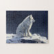 Ein wunderschöner, weißer, arktischer Fuchs, der in einem schneebedeckten Wunderland sitzt, eine ruhige Szene, die in einem Ölgemälde eingefangen wurde.
