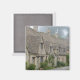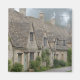 Aimant photo souvenir avec Arlington Row, cottages tissulaires couleur miel dans le brouillard matinal dans la ville de Bibury, les Cotswolds en Angleterre, Royaume-Uni.