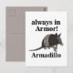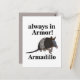 Armadillo Animal Funny Postcard originally designed by Nisha Prabhu. Send a cheerful surprise with our Armadillo Animal Funny Postcard! Showcasing adorable and comically posed armadillo, this postcard adds a playful and quirky touch to your greetings. Perfect for sharing a laugh or sending a quick hello, its charming design is sure to brighten anyone’s day.