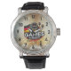 Uhr, Vintage Männeruhr mit schwarzem Lederarmband