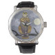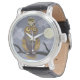 Uhr, Vintage Männeruhr mit schwarzem Lederarmband
