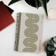Created to coordinate with the "Lombard" art and stationery collection, this spiral-bound notebook was inspired by San Francisco's Lombard Street, which is known as the "Crookedest Street in the World." The notebook features 7 green-colored lines arranged in a winding pattern, and placed over a beige background. There is space for the customer's name on the bottom-right side, and the phrase "Daily Notes" appears in the top-right corner. This text can be customized or removed altogether. The back of the notebook features a coordinating wavy line pattern. The design is minimalistic, yet bold, and would be a perfect gift for men and women alike.