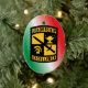 ROTC Monogram Weihnachtsschmuck. Dieses Ornament ist auf der einen Seite mit dem Patch für das Training Corps der Reservateure, auf der anderen mit dem Weihnachtsmann dekoriert.