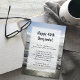 Invitation à la fête d'anniversaire sur la plage pour un homme. Customisez le texte à deux endroits sur une image arrière - plan de plage au lever du soleil en bleu et gris. La mousse de mer sur le sable et les vagues au loin est l'arrière - plan de l'information de fête qui est imprimée sur un panneau blanc transparent. Texte gras en haut pour son nom et son âge avec des informations de fête imprimées sous l'espace pour beaucoup d'informations.